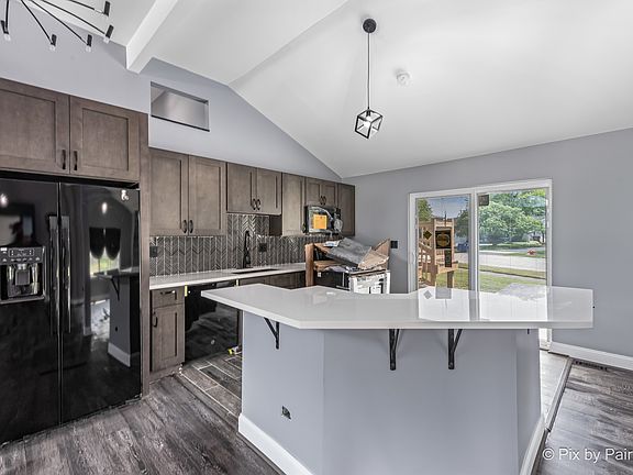 Fully renovated split level home with 4 bedroom and 3 full bathroom! The ceiling has been opened up for an exceptionally open feel with vaulted ceilings in the large living room with custom feature wall and built ins, separate dining room and the amazing fully renovated kitchen with new cabinetry, ss appliances, quartz counters, huge island and beautiful custom tiled backsplash. The second floor boasts a huge primary bedroom with onsuite full bath with new vanity and custom tiled shower, two additional large bedrooms and a second totally remodeled full bath. The lower level has a sizeable family room, laundry/storage and another bedroom and renovated full bath. Epoxied patio and new deck offer great entertainment space. Attached 2 car garage with epoxied flooring. All new flooring, lighting, paint, appliances throughout. The property is a short distance from schools, parks, restaurants, and public transportation. All that is left is for you to move in to begin enjoying your new home!