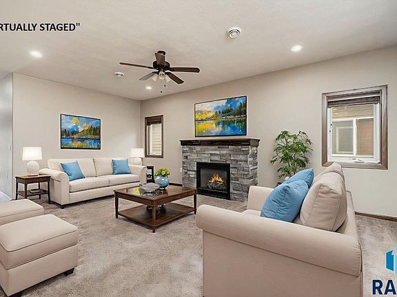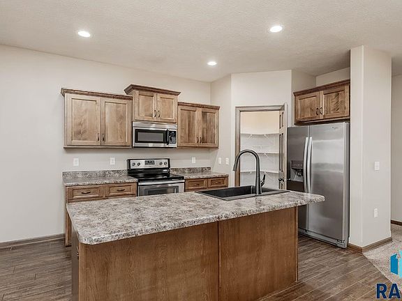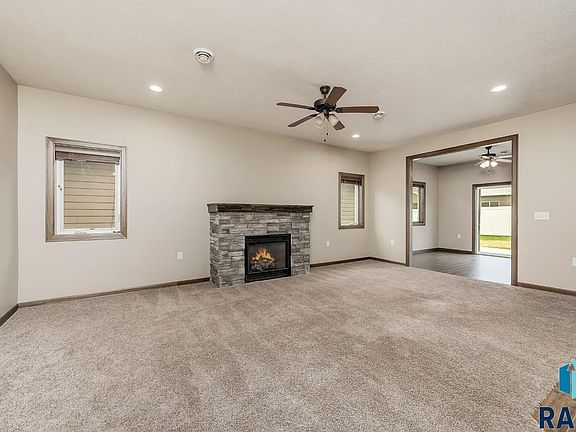 This stunning slab-on-grade twin home blends comfort, function, and style in a quiet, welcoming neighborhood. The inviting exterior with a covered front porch greets you warmly from the moment you arrive. Inside, abundant natural light fills the open floor plan. The kitchen is a cook’s dream, featuring a center island with Corian sink, generous pantry, and ample cabinetry. The dining area offers space for family and friends, while the cozy living room with gas fireplace flows into a bright sunroom and backyard patio, perfect for relaxing. The owner’s suite includes a walk-in closet and private bath with dual vanity and glass-door shower. The laundry is ideally located near the owner’s suite. A second bedroom with walk-in closet and nearby full bath adds convenience. A flexible extra room suits a home office or craft area. and the oversized double garage with water hookups adds practicality.