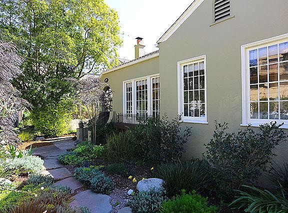 The house was built in 1917, and has old world charm and detail. The house is primarily on one level with a large living room, with a gas fireplace, and a dining room with french doors leading to the garden. The kitchen has a door to the yard, a french door refrigerator, gas stove, and bosch washer dryer and new dishwasher. There is ample work space.