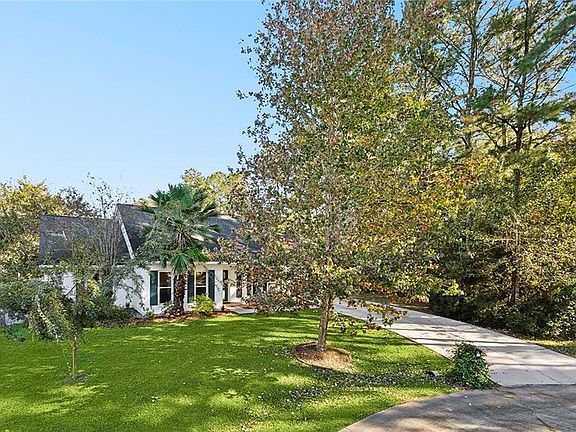 Perfect setting on a cul de sac lot (0.41 acres).  Four bedrooms, 3 full baths.  Two of the bedrooms are primary suites.  Renovated in 2020. Kitchen boasts painted cabinets, granite counter tops, tile backsplash, pantry and stainless steel appliances.  Open floor plan. Living room has vaulted ceilings and a wood-burning fireplace with upgraded tile surround. Updates from 2021 include: porcelain wood-look tile throughout, roof 2020, windows 2020, sinks & faucets, granite in bathrooms, acrylic tubs & shower, vent/heaters, cordless blinds, front door, light fixtures & ceiling fans, utility sink in laundry, exterior shutters.  HVAC and both water heaters replaced in 2019. Rear covered patio accented with wood siding. Extended concrete patio off of rear of home.  Shed. Whole house generator installed in 2022.  Refrigerator included.  Preferred flood zone C. Ingram Estates Subdivision has the choice of Abita Springs schools or Covington Schools.  Can verify with school board, transportation office.