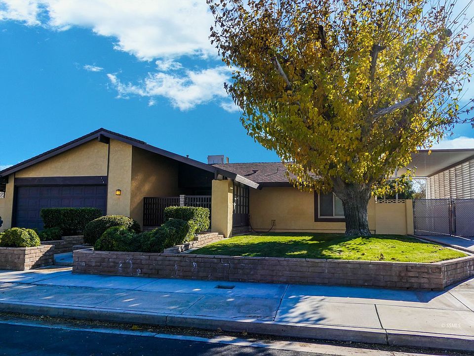 LARGE DEETER HOME! Step up to a home with space everywhere! Well maintained front yard with green grass, shrubs, mature tree, and step up walkway. Private gated front courtyard for extra security. Inside a long and deep living room with a gas fireplace and vaulted ceiling. Kitchen hosts white cabinets, black appliances, and tile counters which blend into a family/dining area with wood laminate flooring. Master bedroom has carpet, dual mirrored closets, and a ceiling fan matched up with a bath. The other two bedrooms also feature carpet and mirrored closet doors. Check out that Murphy Bed! A wonderful space saver! The permitted enclosed patio can be used as a small gym, office, or extra storage. Spacious backyard playground awaits out back with fruitless mulberry trees, masonry fencing, a basketball court, and a large storage shed. 2-car garage is workshop ready for one's own tools and gadgets. Dual pane windows and MasterCool unit. RV parking with metal cover and double gates large enough to fit a bus! LOVE THE STYLE OF THOSE DEETERS!