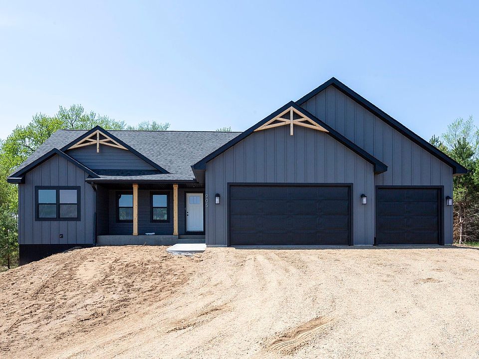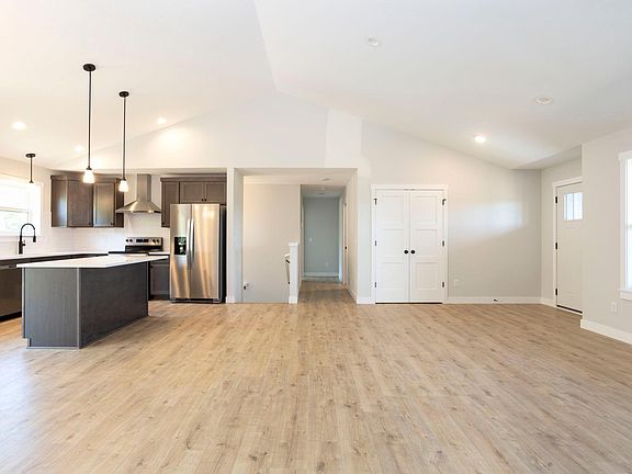 Welcome to the "Titus", an open concept one level layout with vaulted ceilings, main floor primary suite plus two other bedrooms, and an unfinished basement that would bring this home to around 3,000 total sq ft after it is finished. Great opportunity to build in Hudson. Quality finishes and upgrades included- LVP flooring throughout the main living area, black windows, exterior timber trusses, hood vent and on-site enameled trim and doors! Your new build can be complete in 7-8 months, with little down, and no construction loan needed. Other solid features of the home include solid core interior doors, quartz counters, soft close cabinetry, 24' minimum garage depth, low voltage/work from home internet/ethernet set up and lots of other important things for your next home.