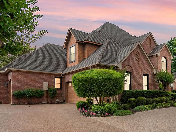 Experience elevated living in this exceptional Walnut Estates home, perfectly situated on the 13th green of the Walnut Creek Oak Course with sweeping golf course and pond views. Inside, timeless elegance meets modern comfort with rich wood, tile, and carpet flooring, custom trim and molding, and grand windows that frame the scenic surroundings from nearly every room. The expansive kitchen is designed to impress, featuring a large island, breakfast bar, stainless steel appliances, six-burner cooktop, built-in ice maker, and single oven—ideal for effortless entertaining. Two staircases lead to a versatile upper level, where a spacious game room opens to a balcony overlooking the green and water, and a stunning office offers unmatched views. Downstairs, the second bedroom—currently used as a bar—offers easy conversion and flexible use. The second full bath includes direct access to the pool, enhancing convenience for guests. A generous laundry room with sink and cabinetry, two gas fireplaces, and abundant storage space add to the home’s thoughtful design. Outdoors, the living experience continues with a covered patio, built-in grill, and beautifully landscaped pool area—perfect for gatherings or quiet relaxation. The oversized lot also features a separate yard space, offering privacy and room to roam. A two-car garage plus a dedicated golf cart bay completes this rare opportunity. A true gem in the heart of Mansfield—where luxury, views, and lifestyle come together in perfect harmony