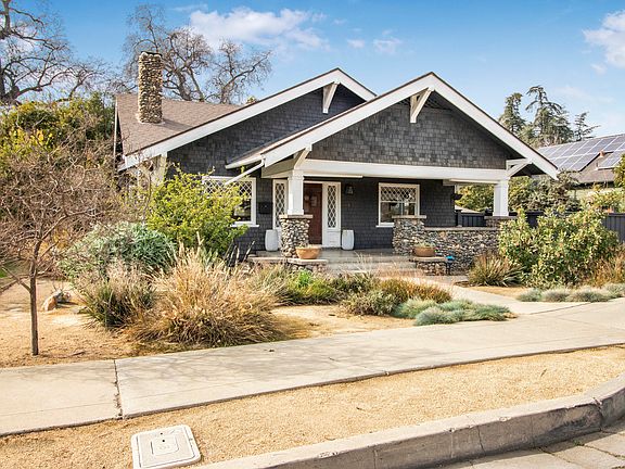Step into this stunning, one-of-a-kind vintage Craftsman-style home in Visalia's Historic District. Meticulously remodeled, this home beautifully blends original charm with modern upgrades. The expansive front porch invites you to relax, while the oversized front door opens into a spacious formal living room and dining room, with original windows that showcase the home's timeless beauty. Refinished hardwood floors flow throughout. The generous family room, adjacent to the updated kitchen, offers views of the large backyard and renovated pool—perfect for entertaining. Featuring 3 bedrooms and 2 bathrooms, this home is an entertainer's dream. Enjoy added convenience with automatic double gates leading to the backyard, plus a storage shed.