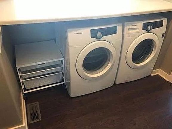 - Modern appliances: washer, dryer, dishwasher, refrigerator, range, and microwave