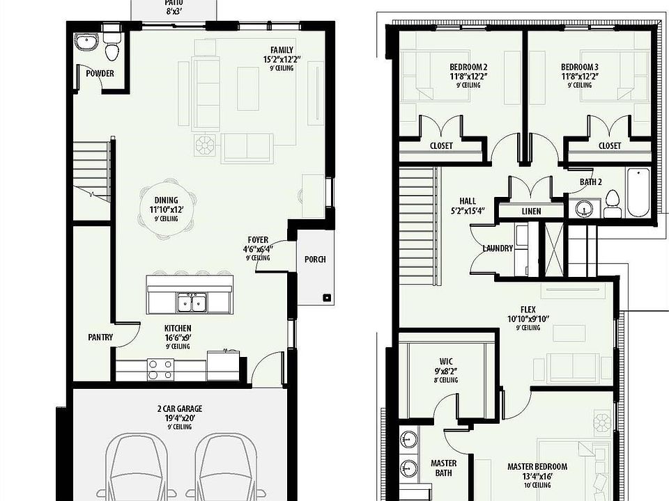 - Attached garage spaces: 2