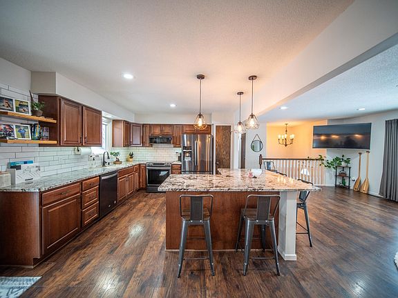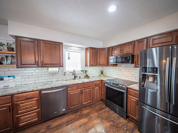 New Listing! Ready to Move In! Updated 4 bedroom, 2 bath home with a super 2+ car garage. This home also comes with a double lot that backs up to Meadow park. Beautifully updated kitchen including all black stainless steel appliances, granite countertops, plus a snack bar and new backsplash. Main tub is a jacuzzi. Newer windows. Lower level has an extra large family/game room. The deck is off the dining room which makes it great for entertaining. Quick possession is available.