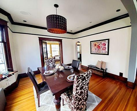 Step into a beautifully updated home where every detail shines. This executive rental features a chef's kitchen with high-end stainless steel appliances, restored hardwood floors, antique doors, and hardware that add charm throughout. Enjoy the fireplace, copper gutters, and a covered porch with a swing perfect for relaxing evenings.