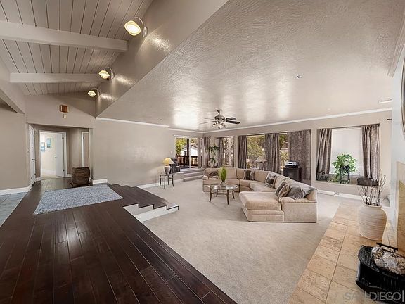 Welcome to 719 Singing Trails Dr — a spacious and versatile home set on a rare 1.41-acre corner lot near the heart of Rancho San Diego. This expansive & level lot offers endless potential and surrounds a thoughtfully designed layout. The home features 4 bedrooms and 3.5 baths. 3 of bedrooms, including the private primary suite, are located together on one side of the main level, while the 4th bedroom and a full bath are situated on the opposite side of the home for excellent separation and privacy. At the heart of the home is a huge front family room filled with natural light, a formal dining room, and a spacious open kitchen that flows into the main living area. Downstairs, the massive rec/bonus room offers sliding door access to the outdoors and provides incredible flexibility as a game room, guest suite, gym, media room, home office, etc. There are 8 separate access points to the exterior throughout the home, many leading to the wrap around deck that makes it easy to enjoy the surrounding property. A generous laundry room with ample storage adds convenience, and an attached 3-car garage offers plenty of parking and additional storage space. Set in a peaceful neighborhood, this home offers the best of both worlds. You will enjoy quiet surroundings with all the conveniences of Rancho San Diego just minutes away. Enjoy easy access to the 8 and 54 freeways, local schools, shopping, dining, and recreation at Singing Hills Golf Club. Do not miss this rare opportunity to own a sprawling, usable property with room to grow in a prime East County location!