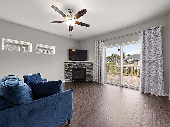 You can move right into this spacious 4 bedroom, 3 full bath walk-out zero lot in idyllic West Branch, Iowa! With tray ceilings, fresh paint, and quality finishes throughout, this like-new space feels like home the minute you step inside. LVP flooring flows from the front entry through the daily dining area and kitchen. Front bedroom with gridded windows and closet with built-in shelf system. White cabinetry, quartz countertops, Whirlpool stainless steel appliances, breakfast bar, and a step-in pantry make mealtimes a breeze in this well-appointed kitchen. Family drop zone with hooks and cubbies and a main floor laundry room (washer & dryer included!) conveniently located off the two-car garage entry. Living room features a corner gas fireplace with stone surround and sliding doors to the elevated deck. Primary Suite with tray ceiling, private ensuite bath, dual sinks, separate toilet/shower area, and a spacious walk-in closet. Downstairs, enjoy 1,050 sqft of additional living space, including two bedrooms (one with a large walk-in closet), another full bath, loads of storage space, and walk-out access to the patio and fully-fenced backyard! Neutral color schemes throughout, white trim, and easy access to Main Street shops, schools, parks, and Interstate 80. Don’t miss this one!