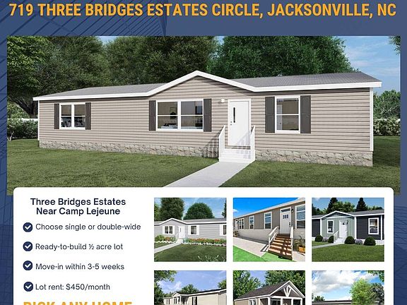 Build Your Dream Manufactured Home - Your Choice, Your Style! Spacious 1/2-acre lot available in the desirable Three Bridges Estates Community, just minutes from Camp Lejeune. This lot is ready for your brand-new manufactured home - whether you prefer a single-wide or double-wide, the choice is yours! Move in as quickly as 3-5 weeks. Lot rent is $450/month. Enjoy the freedom to design your perfect setup in a peaceful, well-kept neighborhood. Owner may consider selling the lot in approximately 4 years, though this is not guaranteed or part of the current agreement.