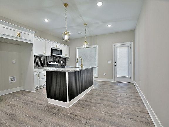 This brand-new 3 bedroom, 2 bath home offers a clean modern design and thoughtful details throughout. The split floor plan provides privacy for the primary suite, which features a spa inspired bath with a soaking tub and a walk-in shower with herringbone tile and glass to be installed before closing. The kitchen includes white cabinetry, a patterned tile backsplash, and an island accented by gold fixtures and pendant lighting. Enjoy a spacious lot, an attached garage, and a convenient location close to shopping, dining, and Fort Benning. This new build combines style, function, and comfort in one beautiful package.