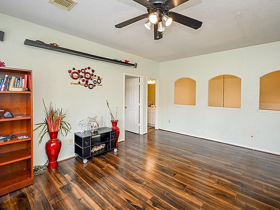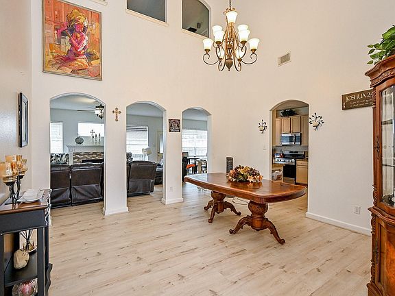 The primary suite is located downstairs along with a private study and half bath for convenience. Upstairs, you’ll find three additional bedrooms and a spacious game room. The family room features a cozy fireplace, while the formal dining area boasts soaring high ceilings. Outside, the oversized backyard offers plenty of space for kids’ activities, gatherings, and outdoor fun.