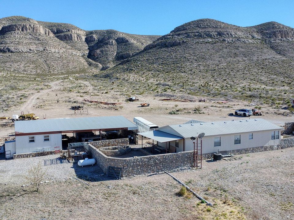 Nestled near Hueco Tanks, this expansive 200+ acre property is a captivating retreat. Ideal for outdoor enthusiasts, it features a 4-bedroom, 2-bathroom manufactured home, now designated as real property. The kitchen includes ample storage and counter space and the primary suite boasts a separate soaking tub and dual vanities. Embrace panoramic mountain vistas from dual patio areas, perfect for serene moments and captivating desert sunsets. Adjacent, a versatile shop with carport awaits hobbyists, complemented by a barn for additional storage. Explore potential in the unfinished property, ripe for customization into a dream ranch house or Airbnb. With its scenic allure, this locale is ideal for weddings, hunting, wild game observing, and diverse outdoor pursuits. Don't hesitate to stop by and fall in love at your own risk!