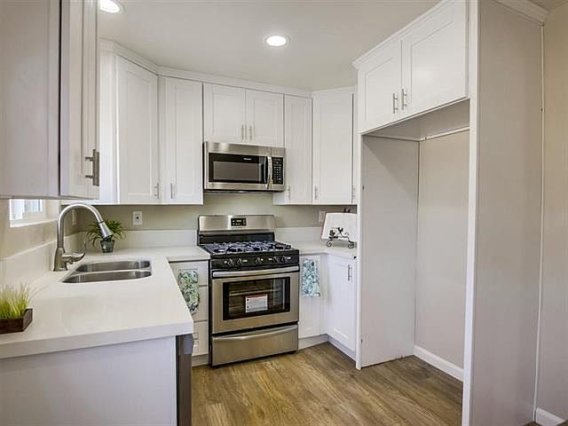 Features new kitchen cabinets, Quartz counters, Stainless Steel Appliances, Custom-Tiled Bathrooms, Flooring, High-End Fixtures/Finishes, 2-Pane Vinyl Windows! Two Parking Space, Private Fenced Backyard, Laundry Hookups. Great Lemon Grove location close to all SD has to offer! Easy access to freeways and transit!