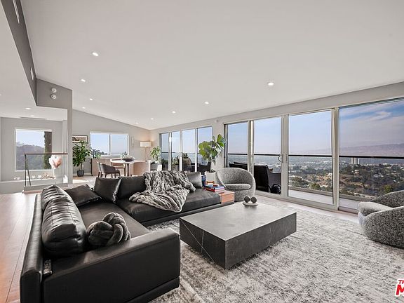 Prepare to be captivated by jaw-dropping views that stretch from the iconic Hollywood Sign and Griffith Observatory to the majestic San Gabriel Mountains, this is Hollywood Hills living at its most spectacular. Reimagined from the ground up in 2017, this Modern Contemporary masterpiece offers a rare opportunity to lease a luxury home that effortlessly blends sleek architectural design with top-tier functionality. Spanning 4 bedrooms and 4 baths, (including 3 en-suite bedrooms) the open floor plan showcases floor-to-ceiling glass on every level, creating a seamless indoor-outdoor connection and flooding the home with natural light. The main living and dining areas serve as the perfect stage for entertaining, framed by unobstructed panoramas. A chef's dream kitchen features Bertazzoni appliances, custom cabinetry, and modern finishes throughout.Thoughtfully designed, the main-level bedroom offers versatility for use as a guest suite, office, or home gym. Downstairs two luxurious primary suites feature spa-like baths with rainfall showers and designer tile. The lower level expands your living space with a glass-enclosed office, full bath, and direct access to one of three expansive sundecks. An elevated observation platform invites you to take in the dazzling city lights that stretch for miles. Enjoy a major reduction in electricity cost with this smart, energy-efficient home equipped with solar panels. More features include dual-zone A/C, new plumbing and electrical, and powered window shades. Additional highlights include a state-of-the-art water filtration system, upgraded security cameras, an automated driveway gate, IPE wood decking, EV charging outlet, beautifully finished landscaping and hardscape, custom built-ins, and a newly completed laundry room with a walk-in shoe closet. With unpermitted street parking that accommodates RVs and a spacious two-car garage, this is a once-in-a-lifetime opportunity to live above it all in refined style. Minimum Lease term:13 months. Available for move-in, November 1st, 2025. AVAILABLE FURNISHED FOR $16,950