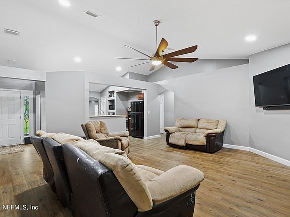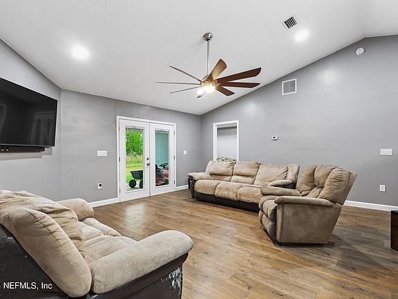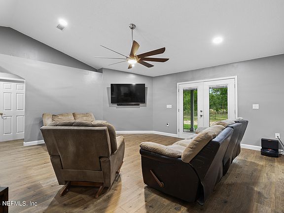 Updated home nestled at a dead end not far from downtown Keystone Heights. Over two acres with most of it fenced and an entry gate. Updates include both bathrooms (2022), LVP throughout and exterior paint in 2023. Owner's bath has a ceramic tile shower and separate soaking tub and the main bath has a shower only. Large family room has French door to the FL room which has French doors to the covered back porch. Shed will convey. With acceptable offer seller will contribute $3,000 towards buyer's closing costs. Don't miss this great property!
