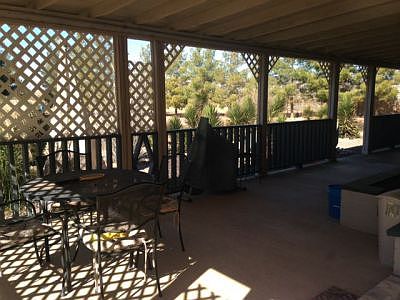 This home will WOW you! It has been lovingly taken care of and the kitchen was remodeled a year and a half ago. The entire property is fenced and it even has its own well with an Easy Water System to take care of the beautiful trees and plants that make this home so special. It has 3 RV hookups and a covered wrap around porch all the way around the house. The interior is light and airy with white wood shutters throughout the home. The neutral paint scheme makes it easy to imagine yourself in this home. Some furnishings may be available to purchase via separate Bill of Sale.