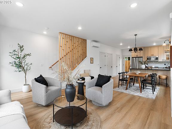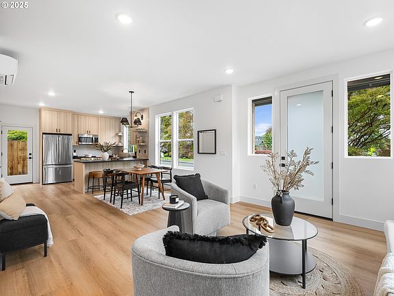 Hello and welcome to the future — I’m a proud participant in the PGE Homes of Tomorrow Today (HOTT) Tour, designed with sustainability, comfort, & modern living in mind. I call the heart of University Park home — one of North Portland’s most vibrant & desirable neighborhoods — and I’m just moments away from the esteemed University of Portland. Whether you're strolling to class, grabbing coffee nearby, or biking to your favorite local spot, my location is truly phenomenal. Inside, I offer over 1,250 square feet of thoughtfully designed space that seamlessly blends form & function. My open-concept floor plan is flooded with natural light thanks to expansive windows, making me feel warm, bright, & alive. With three bedrooms & two & a half bathrooms, I was built to meet the evolving needs of modern life. My kitchen is a true centerpiece — warm, inviting cabinetry paired with honed slab countertops, a sleek tile backsplash, floating shelves, & a stainless steel appliance package that brings both style & efficiency. Every room you’ll explore is adorned with designer lighting, refined finishes, & a rich wood accented staircase that echos quality craftsmanship. Upstairs, you'll find spacious bedrooms with soaring vaulted ceilings & a primary ensuite. My finishes are elegant, yet forward-thinking — a reflection of what sustainable living should look like today & tomorrow. Step outside to enjoy my private, fenced patio & yard, perfect for unwinding after a busy day or hosting friends under the stars. I blend the best of community & privacy, providing peaceful outdoor living in the middle of a thriving, connected neighborhood. As part of Portland’s commitment to affordability & innovation, my list price reflects potential eligibility for the Portland Housing Bureau’s System Development Charge exemption program — helping make forward-thinking homes like me accessible to more buyers. Reach out to learn more about the SDC waiver program or efficient features!