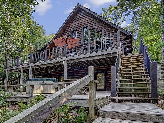 PERFECTION ACHIEVED with this LITTLE ST. GERMAIN GEM - This Tomahawk Log & Country home is known as "The Butternut" and it oozes Northwoods charm and ambiance! Situated on fantastic Little St Germain lake in the heart of the Northwoods, this property offers easy access to all 4 seasons of adventure and recreation - no matter what type of outdoor enthusiast you are! The home has been lovingly maintained and offers over 2,100 sq feet of living space and the lot is private and offers 140 feet of SANDY frontage on a 1.22-acre wooded lot! There is an open concept loft with a full bathroom - perfect for a master suite. The main has 2 spacious bedrooms, 1 full bath, a cozy and inviting, warm great room/kitchen with stunning views over the horizon, a field stone wood burning fireplace, and a three-season porch to complete the package! The lower level is finished with a walkout offering a third full bath with sauna, a huge rec room and loads of storage space! All of this with stunning western views, an 825 sq ft detached 3-car garage, outdoor hot tub, and a lakeside gazebo! WOW!