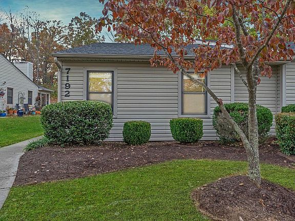 Experience one level living in this beautifully maintained END UNIT and stylishly updated patio home offering the perfect combination of comfort, convenience -- park out front, step inside to find a spacious living room featuring a cozy fireplace with an elegant mantle, luxury vinyl and tile flooring, and freshly painted interiors that create a warm and inviting atmosphere. The large dining area seamlessly connects to the kitchen, making it ideal for everyday living and entertaining. It has a nice kitchen boasting crisp white cabinetry, stainless steel appliances, a built-in microwave, and distinctive countertops that add a modern touch. There's even room for a small breakfast table, providing the perfect spot to enjoy your morning coffee. Off the main living area, a private concrete patio offers a quiet retreat surrounded by trees, with an attached storage space for added convenience.