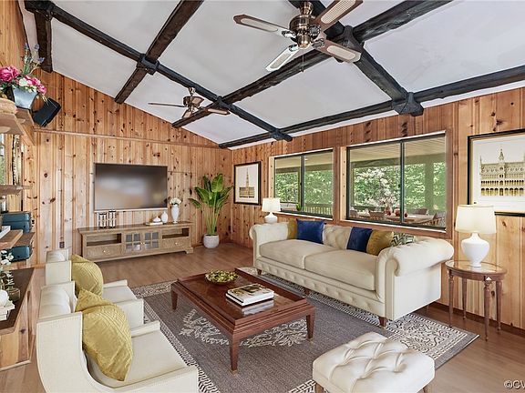 - Beamed Ceilings, Bedroom on Main Level, Dining Area, Separate/Formal Dining Room, Eat-in Kitchen, Jetted Tub, Bath in Primary Bedroom, Main Level Primary, Solid Surface Counters, Walk-In Closet(s)