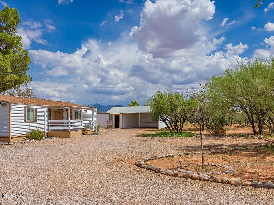Covered patiosBreathtaking sunrises and sunsetsBeautifully landscaped groundsTwo-car carportMultiple storage shedsRustic-style flooringWarm quiet atmosphere
