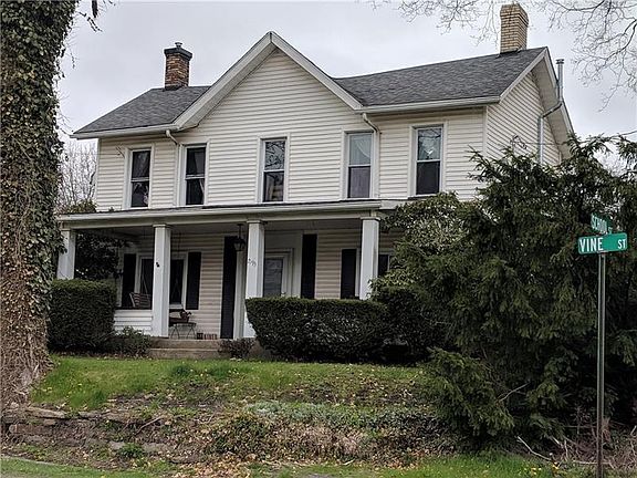 Love the lazy days of summer on your covered front porch and this farm-style house with large rooms, hardwood floors and fenced backyard for pets or little humans. Well-maintained home in town with 2-car detached garage, newer second bathroom with ceramic tile floors. Also includes full-sized gas dryer.