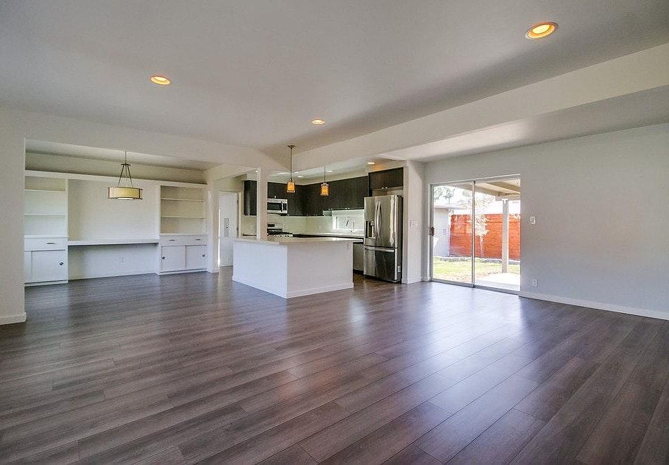 The backyard is now beautiful and green! This 3-bed, 2-bath (plus a bonus room!) house is gorgeous, modern, sleek, vast. Beautifully modern hard flooring, new kitchen, spacious living area, good-sized bedrooms. Lots of built-in storage. Two remodeled bathrooms, very chic. Heat and A/C, with dual-paned, efficient windows. Big sunny yard, patio, and a 2-car garage with additional parking on the garage apron. We pay for landscaping services. An adult dog under 25 pounds or a cat will be considered with references. Please note that excellent credit, current verifiable income, and four years of rental history is a must, and we can't accept cosigners. Please email for a tour (including information about your pets); I'd love to show this home to you. Thank you! We pay for landscaping services. An adult dog under 25 pounds or a cat will be considered with references. Please note that excellent credit, current verifiable income, and four years of rental history is a must, and we can't accept cosigners. Please email for a tour (including information about your pets); I'd love to show this home to you. Thank you!