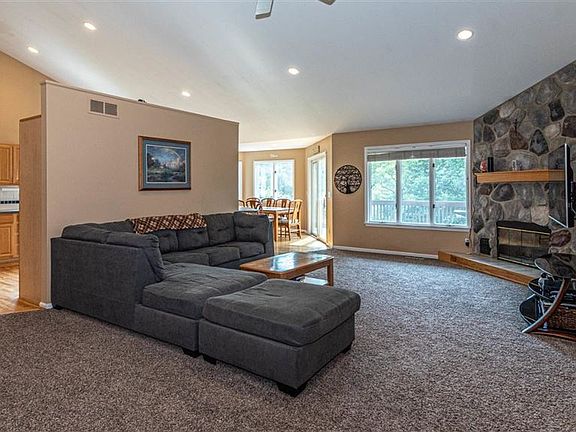 4 Bed/3.5 Bath Ranch Home On 2 Acres, Not Even 2 Miles From Town! Home 90% remodeled in 2020- 21 Living Room Features Open Cathedral Ceilings W/ Stone Fireplace lots of open space. Main Floor Laundry. Main floor master Suite, 2 Additional Bedrooms & Full Bath. Fabulous Finished Basement W/ Corner Stone Fireplace, Built In Entertainment Center In The Family Room with Granite Wet Bar!. Full Tiled Bath, Spa Tub And 4th Bedroom W/ Great Walk In Closet Just Down The Hall. Separate Exercise/hobby Room & Sauna Room. Walk Out To The Patio or Sit On The Upper Deck And Enjoy The Private Wooded Back Yard. Finished Garage, Garden Shed & Established Landscaping Surrounding The House. Easy Access To Town & X-ways.