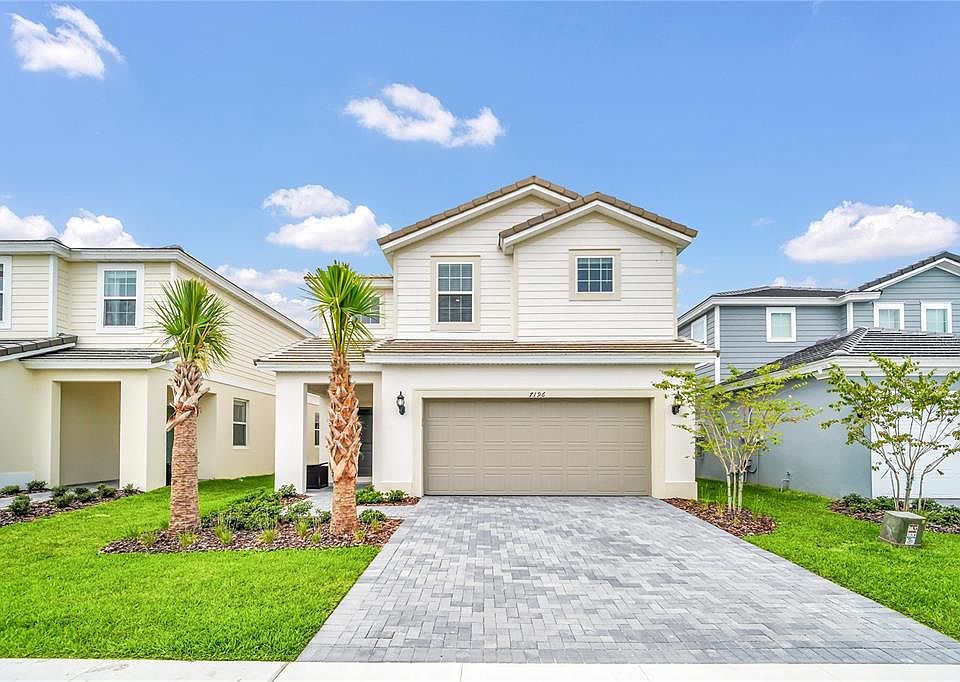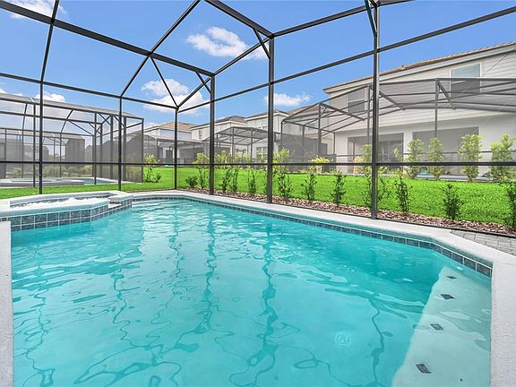 Experience the ultimate in long-term resort living with this beautifully furnished 6 bedroom, 4.5 bath home, where generous space and elegant design meet everyday convenience. Step into an open-concept layout with quartz kitchen and bathroom countertops, stainless steel appliances, and a versatile upstairs loft perfect for entertainment or relaxation. Unwind in your private screened, heated pool and spa, enjoy peaceful nights on the covered lanai, and take in breathtaking sunsets from your west-facing outdoor oasis. Inside this secure, 24-hour gated community, all lawns and common spaces are meticulously maintained by the HOA, providing a worry-free lifestyle. The resort-style clubhouse features a large pool, lazy river, fully equipped fitness center, tennis courts, and poolside cabanas, offering endless opportunities for leisure and connection. With a spacious two-car garage, in-home laundry, this home is tailored for comfort, tranquility, and lasting enjoyment, just 15 minutes from Disney and the best of Florida living.