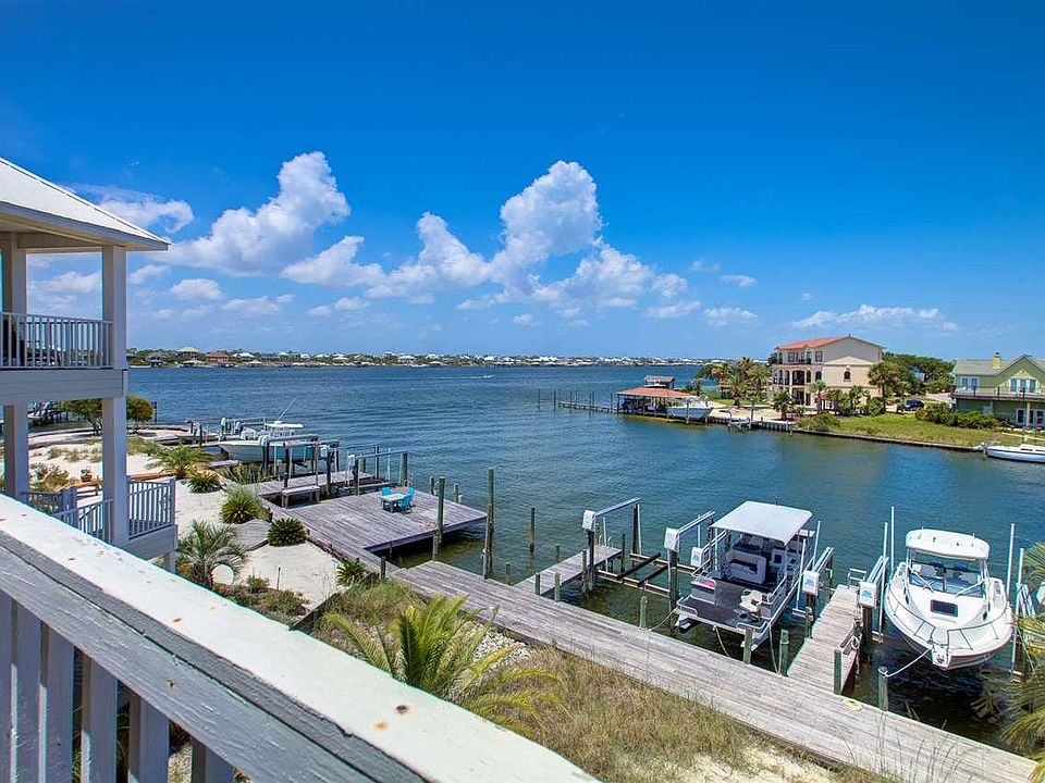 Welcome to Blue Cove! Calling all BOATERS and BEACH GOERS. This gorgeous TOWN HOME is right on the water. Comes with TWO PRIVATE BOAT SLIPS! Also you are about a 3 minute walk to the BEACH! This is WATER LOVERS PARADISE. Step into a gorgeous town home with a NEWLY UPDATED kitchen and gorgeous flooring that flows into the elegantly styled dining and living room. Also there is a newly updated half bath in the main living and kitchen area for convenience. Be greeted upstairs to a master and a guest room with a generously sized shared bathroom. Sit and watch the boats pass on the private balcony from the master. Make you way down to the ground level and enter the separate apartment. Equipped with a kitchenette a bathroom, a queen loft bed, a sitting area, a washer and dryer, and porch access. Have evenings on the tranquil patio and enjoy the bay breeze with a nice cocktail. Whether you prefer sunbathing on the back patio, taking the boat out, or listening to the waves while lounging on the beach, Blue Cove has a way for everyone to relax! Located in Perdido Key, you will find several restaurants and attractions nearby such as the Flora-Bama, The Crab Trap, The Shrimp Basket, and Lillian's Pan Pizza! Also close to BEACHES and close to the cute urban city of PENSACOLA. Come make a move on this one of a kind BEACH HOUSE!