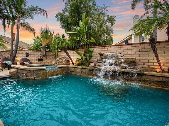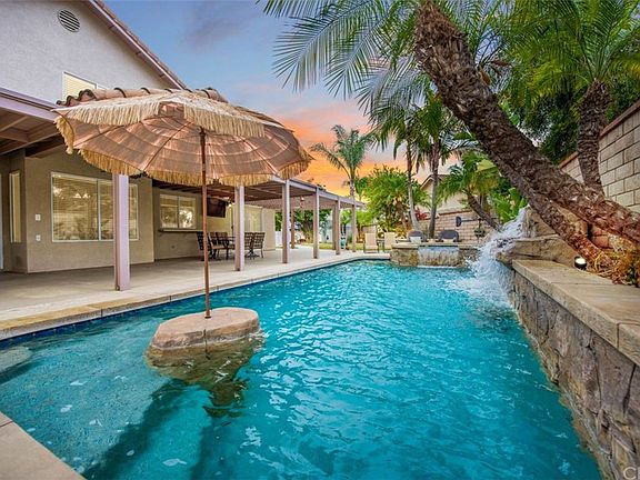 This 2,141 square ft home sits on a 10,454 square ft lot and features a Master retreat. The 4th bedroom is configured as a part of the Master retreat and could be converted back to a bedroom. Master Suite with vaulted ceilings, oversized fan, walk-in closet, retreat with 2nd closet. Kitchen with Granite Counters and stainless appliances (including refrigerator). Four burner gas range with built-in griddle. Recessed can lighting. Oversized great room with floor to ceiling custom stone fireplace centerpiece. 70" Sharp TV included. Built-in 7.1 surround with audio equipment included. Permitted 240sf addition with vaulted ceiling was added to turn existing family room into great room. A/C replaced in 2012. Whole house hardwired with network cable, HDMI to bedrooms. Whole-house fan and ceiling fans to cut electric bills. French doors lead to Back Yard Paradise- Stained concrete patio for entertaining with oversized patio cover. Outdoor kitchen with Firemagic BBQ grill and burner, outdoor fridge and sink. Two back yard flatscreen TVs included as well as outdoor speakers. Tropical look with palms and ample LED outdoor accent lighting. Pool/Spa - redone in 2016-Salt Water, Pebble Tec with rock waterfalls, Wireless Goldline Remote, LED lighting, Rock table with umbrella, variable speed pumps, newer Hayward heater. Gated (13ft) RV Parking, 17ft x 80ft, with electrical and water hookups, driveway with easy back-up access. Low taxes and no HOA. Zoned for King HS.