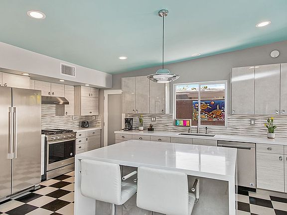 Mid-Century home located in the heart of Rancho Mirage. Tierra Del Sol is a hidden gem waiting for you to discover it's charm. 3 bedroom, 2 bath with an open floor plan. Primary Suite is very large with an area that can be the perfect at home office. Primary bathroom has dual sinks, granite counter tops and tile the color of the Ocean. Walls of glass in the back yard allow the views to flood the room with mountain views. This home is on the corner and very close to the community pool. Room for a pool in back yard near your very own putting green. Carport with electric gate and well landscaped circular driveway.