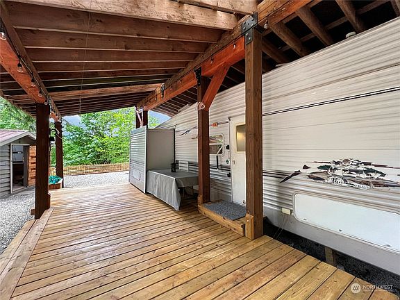 Discover your slice of paradise at this bright & sunny recreational property in the Glen at Maple Falls. The "Pinterest-worthy" 5th wheel is both stylish & functional! There's a queen bed, bunk beds, a tub/shower combo & a kitchen with all of the conveniences of home. Outside are both a storage shed and a wood shed. The surprisingly spacious lot offers ample room to relax. Enjoy the stunning territorial views from around the campfire. The large covered deck was built to last, protecting your trailer year-round. Amenities include parks, pools, a hot tub, sauna, tennis courts, disc golf & more! 24/7 security, too. With easy access to the Nooksack River and just 15 minutes away from Mt Baker and Silver Lake, it's an outdoor enthusiast's dream.