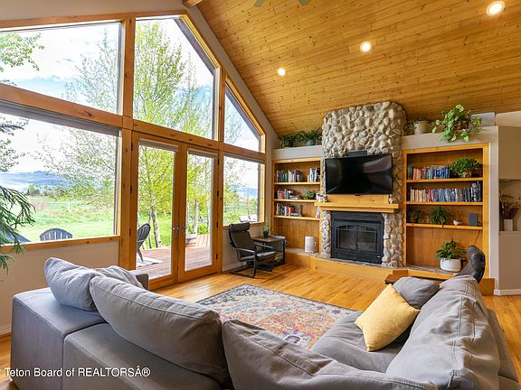 Enjoy huge Teton views from this warm & contemporary home with attached garage and insulated shop with lift & RV door and adjacent buildable lot. Comfortably heated with hydronic in-floor heat & a propane fireplace, the vaulted open floor plan has 3 bedrooms, 2 bathrooms & potential 4th bedroom/office in the lofted bonus space or 2nd living area. On 4.79 acres with irrigation water, dog fencing, great landscaping, bike track, fiber optic internet & extra storage in the shed & playhouse. Oversized east-facing deck to take in the 4 Peak views. The sunny main level primary suite has an updated bathroom & french doors to the deck, while a designated laundry room, walk-in pantry & separate mudroom off the garage improve the home's livability. 3.5 miles to Driggs and 20 mins. to Grand Targhee.