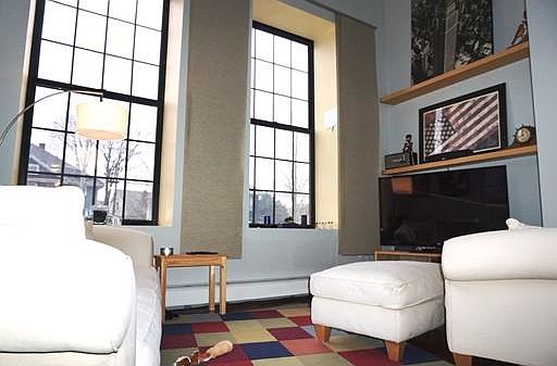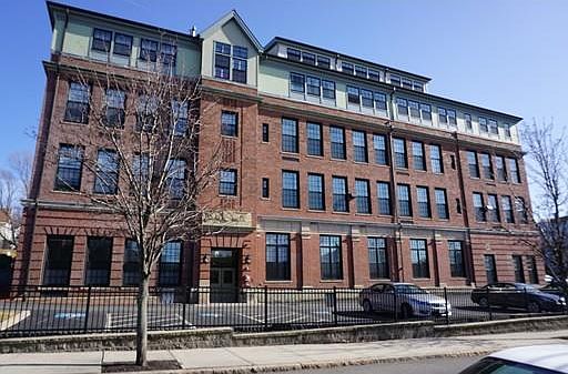 Dramatic corner unit at the prestigious Belmont Lofts. This 1889 former school house was renovated in 2004 and is professionally managed. There are only two units with this floor plan for two bedroom units Felatures include: ceilings soaring from 12 to 20 feet , opening living area with Brazilian Cherry floor, designer lighting, . Master suite with apacious walk in closet and full bath, spacious second bedroom. Maple cabinets, breakfast bar, in unit laundry closet, extra storage and parking, Up to 2 pets under 25 lbs are allowed. Great location on near bus line, less then a mile to the T, stores, parks, schools and easy access to major routes for commuters. This chic, professionally managed residence offers 36 units and is primarily owner occupied.