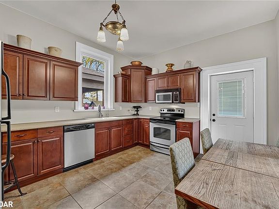 You'll be impressed by this elegant, FULLY UPDATED Century home that beautifully blends classic charm with modern comfort. Spacious principal rooms feature High Ceilings, Hardwood Floors and original architectural designs throughout. The main floor features a Stunning Library, perfect for quiet reading or home office, and a bright living and dining area ideal for entertaining. French Doors open to a large deck overlooking the backyard and the picturesque Nith River Valley. "The kitchen features Rich Espresso cabinetry paired with stainless steel appliances and ceramic flooring. Upstairs, you'll find four generous bedrooms, a bright bathroom with a skylight and a versatile hallway ideal for an office or reading area. Renovated top to bottom - including windows, furnace, A/C, wiring, and plumbing - Just Move in and Enjoy!