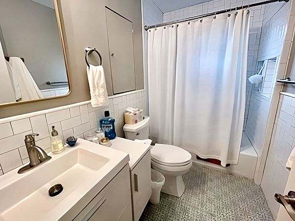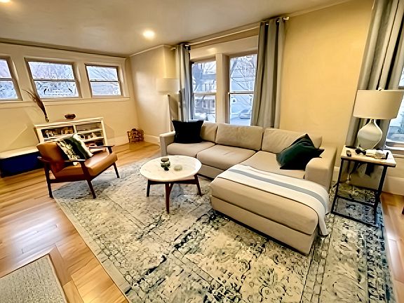 FOR RENT - (Short term rental 3-6 months only) renovated 2nd floor condo in Washington Square near Beacon Street, Runkle elementary & Brookline High school, shops, restaurants, Boston College and 2 trains (green line C+D) to Longwood Medical and downtown Boston. Two generous size bedrooms plus third smaller bedroom. New renovations include: beautiful new wood floors and decorative tile, STUNNING chef's kitchen with custom white cabinetry, sleek black granite countertops and stainless steel appliances. Breakfast bar with seating adjacent to dining room. Brand new bath with gorgeous white brick tile and modern vanity with additional storage. Heat is extra (gas) but newer windows throughout and CENTRAL AIR. Direct access to private laundry located on rear stair landing. Sorry no basement storage but nice front porch with spacious first floor private entry vestibule good for bikes and coat storage. ONE outdoor parking included. Sorry NO PETS and NO SMOKING. Available Aug 1 Owner pays for water. Tenant responsible for all other utilities (heat, elec, etc). Security deposit and broker fee