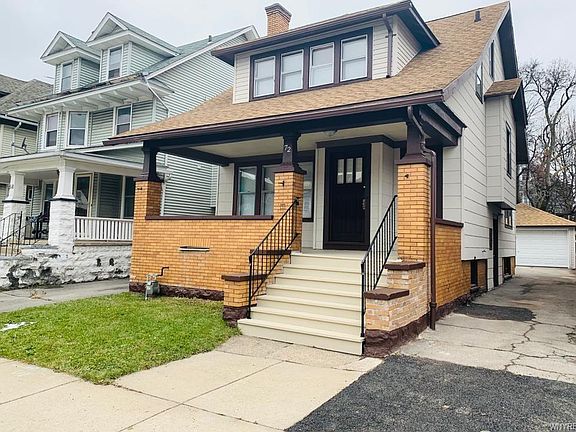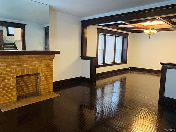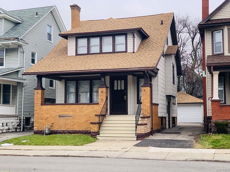 Welcome to 72 Beverly Road, a pristine, updated and ready to move in home on a quiet block with a lovely grassy median just steps away from Canisius College. Enter into a foyer room with a built in wooden window bench seat, original hardwood floors and large living room with a fireplace that leads into a dining room with gorgeous natural wood beams decorating the high ceilings and into the large updated modern custom kitchen with plenty of cabinet space and a large butlers pantry. The first floor also features a large updated half bath. Head up the dual stairways with natural woodwork railings and new high quality carpeting to a full tiled bathroom and three large bedrooms with plenty of closet space and custom built shelving and drawers. The large full basement features modern mechanicals and update electric. House has just been painted Summer 2020 young roof, fenced back yard with a large double garage with new door. 72 Beverly is a one of a kind home, come view this home today.