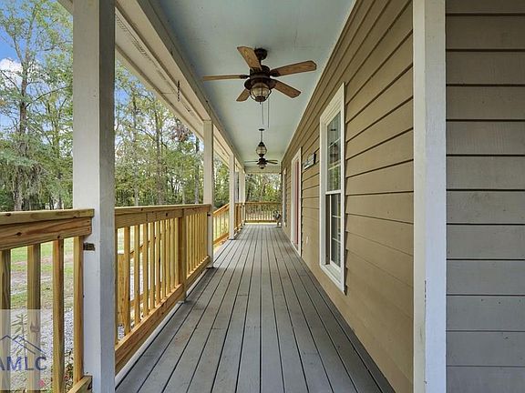 Just off the beaten path, this beautiful Low Country home is nestled among incredible live oaks on almost 3.5 acres! Offering just over 3,000 sq ft, this spacious property features 3 bedrooms, 3.5 baths, and thoughtful updates throughout. The main level showcases brand-new vinyl flooring and a completely renovated kitchen with all-new cabinetry, butcher block countertops, and new appliances. The open-concept design provides seamless flow between the large living room with gas log fireplace, breakfast nook, and formal dining area. The oversized walk-in pantry adds excellent storage, while the main-level primary suite serves as a private retreat with two walk-in closets and extra linen/shoe storage. A guest half bath and dedicated laundry room—complete with a built-in dog wash station—add everyday convenience. Upstairs offers two generously sized bedrooms, guest baths, and a large bonus room over the two-car garage, providing flexible space for family, guests, or hobbies. Enjoy the outdoors with a huge wraparound front porch and a spacious screened-in back porch overlooking the peaceful country setting. The separate studio living quarters out back provides endless potential for guest accommodations, a home office, or creative workspace. Additional features include custom tile showers, a new roof, gutters, downspouts, gutter guards, and a new vapor barrier with humidity control system in the crawlspace. Conveniently located minutes from I-95 and an easy commute to Ft. Stewart, HAAF, Savannah, Brunswick, and Georgia's beautiful coastal waters.