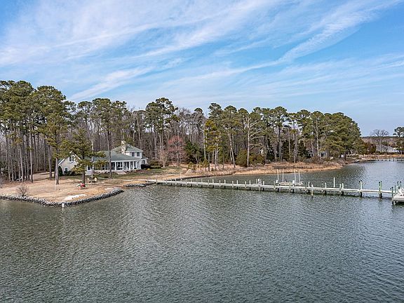 This 4 bedroom 3.5 bath home is situated on 3.3 acres and enjoys sweeping views of Antipoison Creek in White Stone, VA. It boasts a deep water harborage with 8 feet MLW at the pier and easy access to the bay for cruising and fishing. Exterior features include low maintenance Cedar Impression shake siding, plenty of outdoor living space on the wrap around covered porch and attached screened porch, rip rapped shoreline for protection of your waterfront, a pier with two lifts including electricity and water and ample waterfront yard space all irrigated. The interior is open and airy with abundant natural light and water vistas from just about every room. The great room includes a vaulted ceiling and opens to the dining area and kitchen. Walk right out to the covered and screened porches. Ash hardwood flooring throughout. You will find stone counter tops, a large island, white cabinetry and plenty of workspace in the kitchen. Just off the kitchen is a large utility room with center island for projects and crafts. There is a powder room on this side of the home along with access to the 2.5 car garage and unfinished bonus space above. First floor waterfront owners' suite with his and her closets. The first floor is rounded out with a guest bedroom and en-suite bath. Upstairs you will find two additional guest bedrooms, hall bath and bonus storage area. Conditioned crawl space. Back up generator. Designed by William Prillaman and built by the owner and founder of Connemara Construction. Quality construction, premiere location by land and sea, and deep water.
