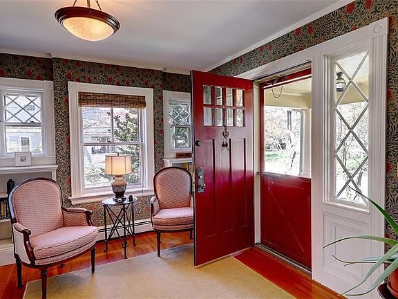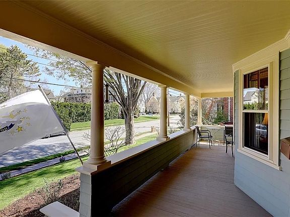 Period details and distinctive interior design highlight this pristine home in the desirable Edgewood neighborhood. A welcoming wraparound porch leads to the entry foyer with original built-ins. The interior of the home is full of natural light and expansive open spaces providing a great layout for entertaining. The kitchen has been tastefully updated including granite countertops. The second floor offers a large master bedroom with sitting area, two additional bedrooms and a beautiful custom bathroom. The top level is a spacious fourth bedroom with plenty of light that is accented with exposed beams. The finished lower level provides a terrific family room with a full bathroom. The private yard is a beautiful oasis filled with interesting plantings and a lily pond. In addition to the close proximity to the marinas a short walk brings you to the great shops and restaurants in Historic Pawtuxet Village. Minutes to Providence.