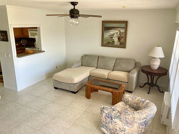 Best 55+ Community in South Florida. Beautiful community, magnificent landscaping throughout. Manned Guard gate for added security. Tons of amenities including bus shuttles to and from shopping centers. Condo is located on 3rd floor and has been updated, freshly painted throughout, newer AC units (2), newer hot water heater, newer refrigerator, all within last 1-2 years. New roof and exterior painted within last year. Hurricane proof front entrance door and master bedroom slider patio doors installed. Screened in balcony off master bedroom overlooks a beautiful lake. All new ceiling fans installed throughout condo. Crown molding throughout. Laundry facilities on each floor with a storage area for unit. Quiet and safe community. Option to buy furnished as shown in pictures with full kitchen (dishes, silverware, pots and pans, etc). No change in price. Xfinity cable/wifi and water/garbage fees included in monthly HOAs. Great opportunity is awaiting!