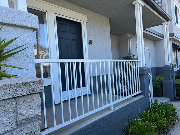 Super Sharp 2-bed / 2-full bath / 1-car attached garage townhome. Inside stairway that takes you up to the light-and-bright upstairs living space. The interior has been thoughtfully upgraded throughout, featuring brand-new SPC vinyl plank flooring and paint thru-out. Kitchen includes brand new quartz countertops/backsplash and new stainless-steel sink, new Moen 3/4 HP garbage disposal, plus a new and stylish hand-spray faucet elevate the culinary experience. Brand new energy-efficient kitchen appliances include a stainless-steel microwave/hood combo and new refrigerator. Newer gas oven/range and dishwasher. Eating area in the kitchen with a ceiling fan too! Living room has a large deck to enjoy city light views, plus a ceramic log gas-burning fireplace. Master suite with vaulted ceilings and ceiling fan with cityscape views. Both bathrooms have brand-new countertops/backsplash, new sinks, faucets and toilets. The newer HVAC unit was replaced in 2023. Community pool, spa, greenbelt areas, close to schools, freeways (73/133) and shopping. The attached 1-car garage with an automatic roll-up door opener also houses a new oversized water heater and laundry area which includes a newer washer and gas dryer too! Additionally, there is a reserved parking space (CC) located just off to the side of the front porch. Pet fees / deposit / restrictions apply.