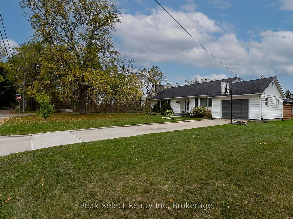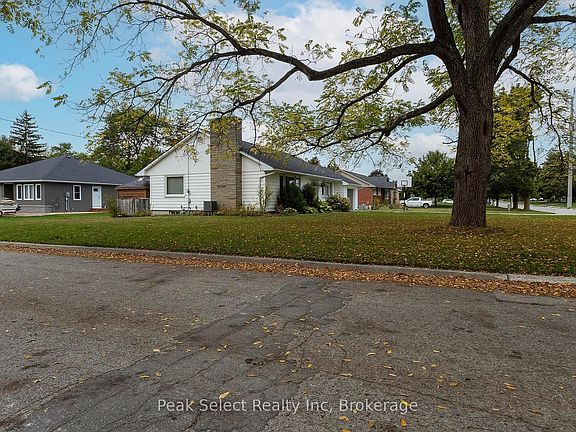 Welcome to 72 Carrall Street, St. Marys! Nestled on a quiet corner lot in a desirable neighbourhood, this charming bungalow blends original character with modern comfort. Built in 1955, it features lovely details such as ceiling accent trim in the living and dining rooms, built-in cabinetry, and a wood-burning fireplace with a brick surround (as is). A large picture window fills the living room with natural light and offers a beautiful view of the tree-lined street and front gardens. The carpet-free main level includes a convenient main-floor laundry hookup, while the finished lower level adds flexible living space with a laundry room, family room, office, and gym area to suit your family's needs. Outside, enjoy ultimate privacy in the spacious yard complete with a large deck and hot tub. Parking is abundant, with an attached garage, a main driveway that accommodates three vehicles, and a second side drive for two more. There's also plenty of storage in the large garden shed and a smaller shed for the hot tub area. This move-in-ready home offers charm, space, and serenity in one of St. Marys most peaceful locations.