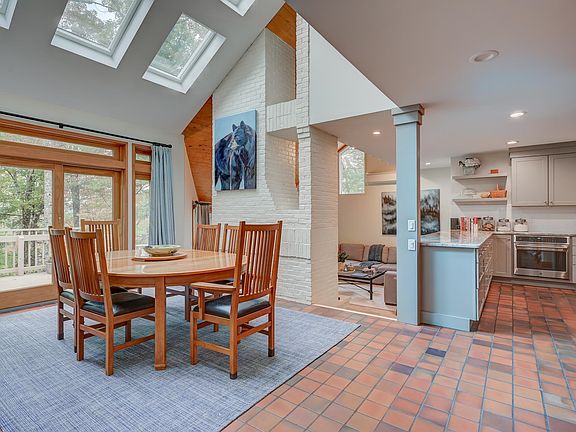 Get ready to be stunned by this completely renovated 5+ bedroom, 4-bath residence at Cranmore Woods, less than a mile from Cranmore Mountain and downtown North Conway. Every detail, and I mean EVERY detail, has been meticulously redone, from the custom cabinetry and birch staircases handcrafted by master woodworker Andrew Narducci to the home’s systems and exterior. The open kitchen showcases Thermador and Café appliances with a touchless Kohler faucet and granite countertops that match all the bathrooms to seamlessly match the aesthetic throughout. The living room’s floor-to-ceiling white brick and wood fireplace and birch ceiling give the space a modern warm vibe, with steps to the dining room, drenched in natural light from the Kalwall skylights. A bedroom and ¾ bath round out the main level. The second floor features the primary suite with heated tile floors, a huge tile shower, and a double vanity. 2 additional bedrooms and a ¾ bath, as well as a small loft area for a reading nook or storage. The lower level is where all the fun happens! A huge custom bar with Vermont soapstone countertops, built-in appliances, a living room with woodstove, a built-in bunk room that sleeps 8, game area, and a full bathroom. Outside, there’s a 10-person South Seas hot tub, a sunny deck, and an entryway with a storage locker. Set within a well-managed community complete with a pool and tennis courts. Rentals must be a minimum of 30 days.