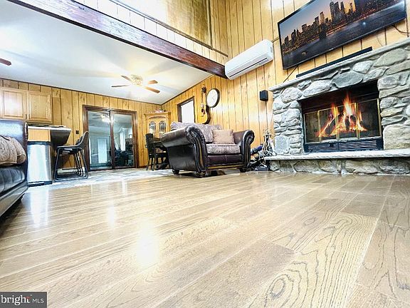 Find your DREAM GETAWAY in the heart of the Pocono Mountains at Big Bass Lake! This FURNISHED and BEAUTIFUL 4-bedroom, 2-bath WITHING WALKING DISTANCE TO POOL! This home perfectly combines MODERN convenience with MOUNTAIN CHARM, making it ideal for FAMILY retreats or a smart Airbnb INVESTMENT. Step into an inviting OPEN FLOOR PLAN, perfect for relaxing or hosting guests. The living area features a cozy WOOD-BURNING stone FIREPLACE, perfect for chilly nights. The UPGRADED kitchen boasts STAINLESS STEEL appliances, GRANITE COUNTRETOPS, and plenty of prep space for your favorite meals. A gas-powered HOUSE GENERATOR provides extra security, ensuring you're READY for any electrical power outage! Two well-designed BATHROOMS add convenience for everyone. All you need to do is pack your bags and enjoy this Pocono retreat! The home also offers a spacious HEATED GREAT ROOM, measuring 33'x21', with a large dining area, bar, and comfy living space—a hub for gatherings. Step out onto the FRONT DECK to sip your morning coffee and take in the natural surroundings. Big Bass Lake offers year-round amenities, including INDOOR and OUTDOOR POOLS, TENNIS COURTS, and a SNACK BAR CLUBHOUSE. Outdoor lovers will enjoy TWO pristine LAKES with SANDY BEACHES, perfect for SWIMMING, FISHING, and KAYAKING. The community amenities and location make this home a great option for SHORT-TERM RENTALS, giving you the chance to offset costs while enjoying your MOUNTAIN ESCAPE! Whether you're seeking a personal retreat, a year-round home, or a SMART INVESTMENT, this Big Bass Lake property offers endless opportunities. *** Some pictures are virtually staged for marketing purposes only. ***