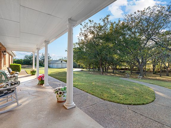Imagine driving through the trees, across the bridge to your private estate, nestled on 10 acres in the highly sought-after Aledo, TX. This immaculately kept home is filled with natural light—thanks to a wall of windows overlooking the covered back porch and peaceful, pecan-studded landscape. The thoughtful floor plan offers four spacious bedrooms—each with its own en-suite bath and walk-in closet—plus additional baths for guests and everyday convenience. A major bonus: a 50' x 60' insulated shop with a mezzanine, ideal for future living quarters, studio, or office, and a full bathroom—perfect for hobbies, gear, or multi-generational needs. Outdoors, enjoy native pecan trees, open space for animals, gardens, or trails, and the freedom of no HOA and no animal restrictions. Inside, comfortable living and entertaining spaces flow easily to the back porch for sunset views. Practical updates include a recently pumped septic, and a high-efficiency fireplace capable of heating up to 3,000 SF for cozy winter nights, and a central vacuum system. Don't miss a rare opportunity to own a sizable, private slice of Aledo—bring your vision and make 72 Crown Rd your retreat.