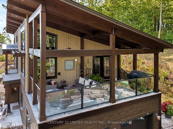 Indoor Sauna, Deeded Waterfront Access, Recently Built Hybrid Home 2020. One-of-a-kind architectural masterpiece by Discovery Dream Homes with vaulted 13-foot ceilings, exposed timber beams, and finishes that elevate every surface. Set on a double lot with panoramic lake views, deeded waterfront access, and a private dock. Armour stone landscaping and gardens define the property, complemented by a double heated garage. An oversized screened-in deck with a 13-foot vaulted ceiling, heating, and year-round comfort extends the living space outdoors. Inside: a gym with custom sauna and shower (easily converted back to a third bedroom), two bedrooms including a primary suite with luxurious ensuite and soaker tub, plus two additional powder rooms. A flowing layout frames the views from every main living space. Additional features include a lifetime-warranty roof, Energy Star rated windows and doors, and precision timber joinery. Built in 2020, this home combines new-age craftsmanship with timeless design. The lifestyle you've envisioned is built into a home designed to meet it. For those who recognize what's rare, your dream home awaits. Just 10 minutes to Peterborough, and 1 hour to Toronto.